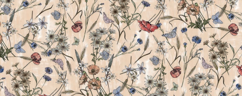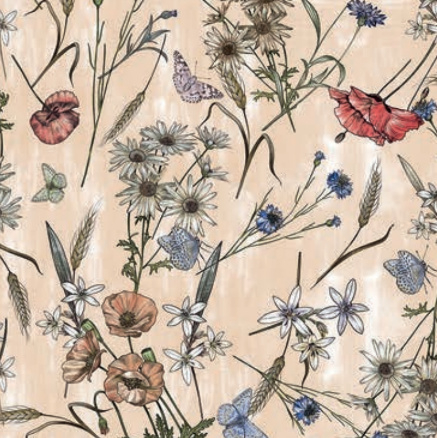 • Vrolijk dessin met klaprozen en vlinders