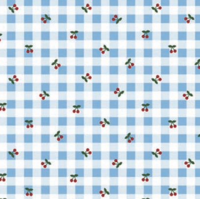 PVC Tafelzeil Ruitje Lichtblauw Kersen – Fris en vrolijk tafelzeil