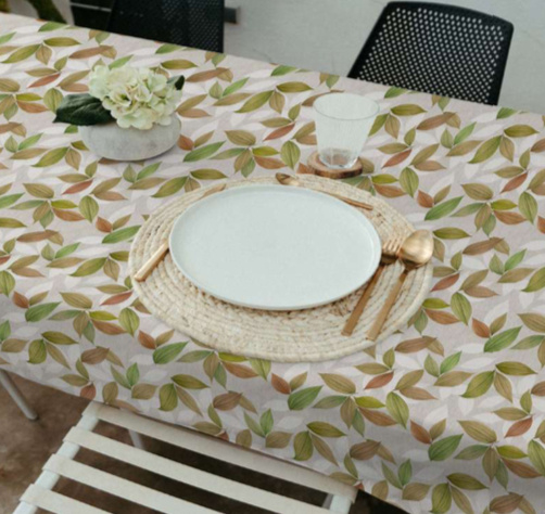 Gecoat tafellinnen – Talma Terra | Afwasbaar tafelkleed met bladerenprint