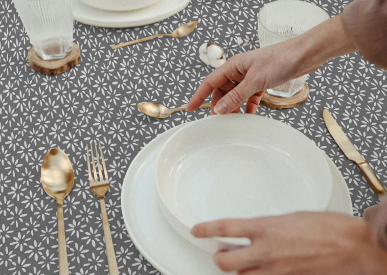 Gecoat tafellinnen – Lirial Perla | Afwasbaar tafelkleed met minimalistisch design