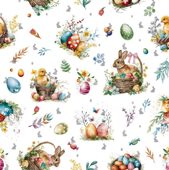 Tafelzeil - Paashaas witVrolijk PVC tafelzeil Paashaas wit. Perfect voor Pasen en het voorjaar. Afwasbaar tafelzeil met vliesrug, 140 cm breed. Bestel per 10 cm vanaf 50 cm.