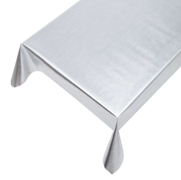 Geef je tafel een moderne, luxe uitstraling met dit metallic zilveren PVC tafelzeil. Afwasbaar, duurzaam en perfect met 15–20 cm overhang – €12,00 per meter!