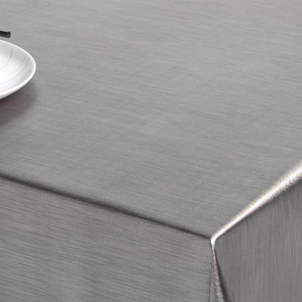 Geef je tafel een chique, moderne uitstraling met dit metallic antraciet PVC tafelzeil. Afwasbaar, slijtvast en ideaal met 15–20 cm overhang – €12,00 per meter!