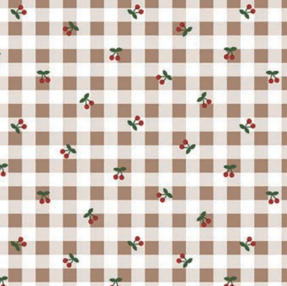 Tafelzeil - Beige ruitjes kersenPVC tafelzeil Beige Ruitjes Kersen met charmante kersenprint. Afwasbaar, 140 cm breed en eenvoudig schoon te maken. Bestel per 10 cm vanaf 50 cm.