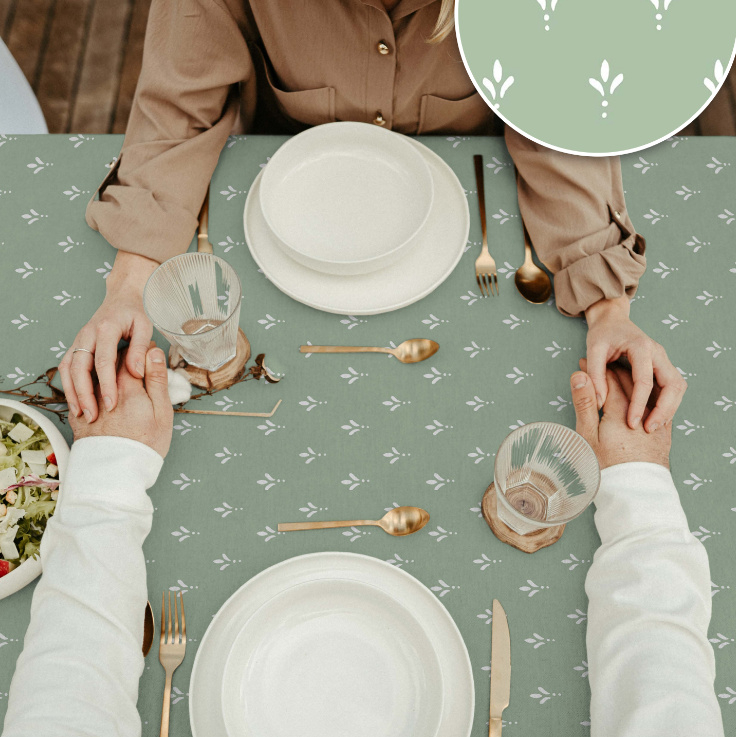 Geplastificeerd katoen - Lunel groenGeplastificeerd katoenen tafelkleed Lunel Groen met minimalistisch patroon. Water- en vlekbestendig, duurzaam, soepel en makkelijk opvouwbaar.